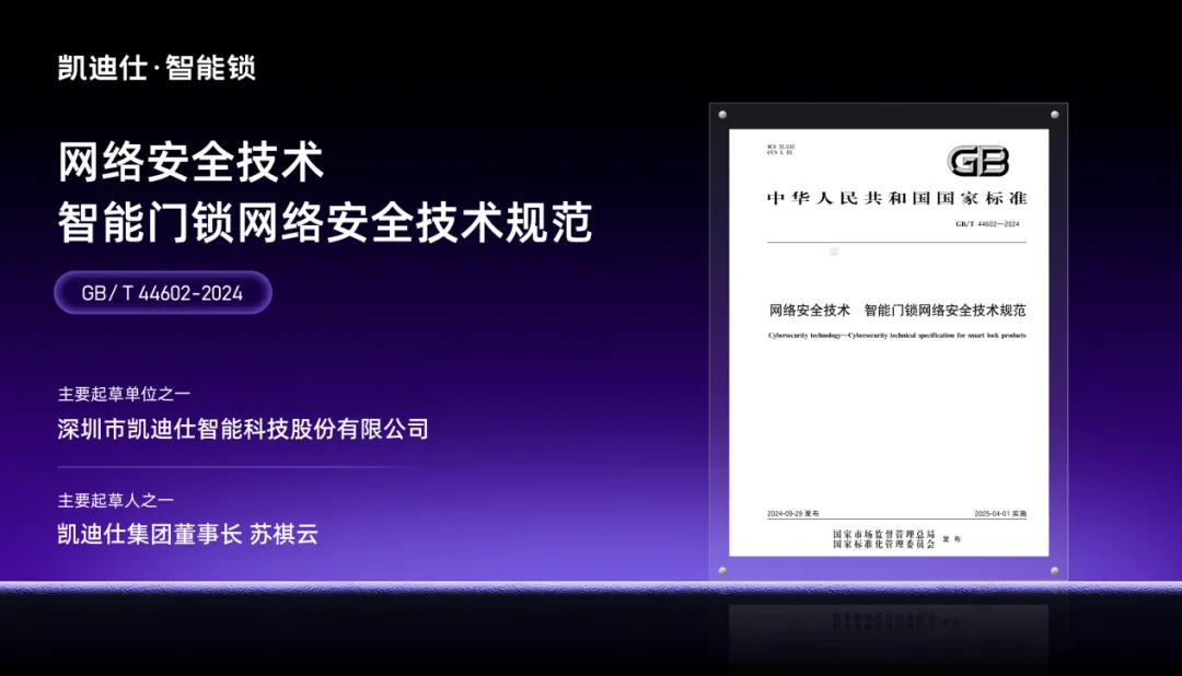 凱迪仕參與制定 “智能鎖行業(yè)最新國家標(biāo)準(zhǔn)”,為行業(yè)樹立標(biāo)桿典范!